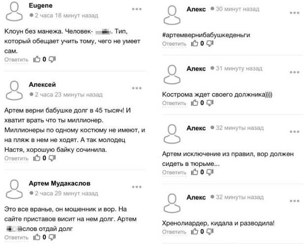 Здесь и в других группах, где обсуждают MLM («multilevel marketing», «многоуровневый маркетинг» — так называют сетевые торговые пирамиды вроде «Гербалайфа») и мошенников, очень много отзывов и историй, в которых Артёма Маслова называют обманщиком и фальшивым миллионером. Во-первых, многие жалуются на то, что его проект бизнес-тренингов «Предел» — просто выманивание денег без всякой отдачи.